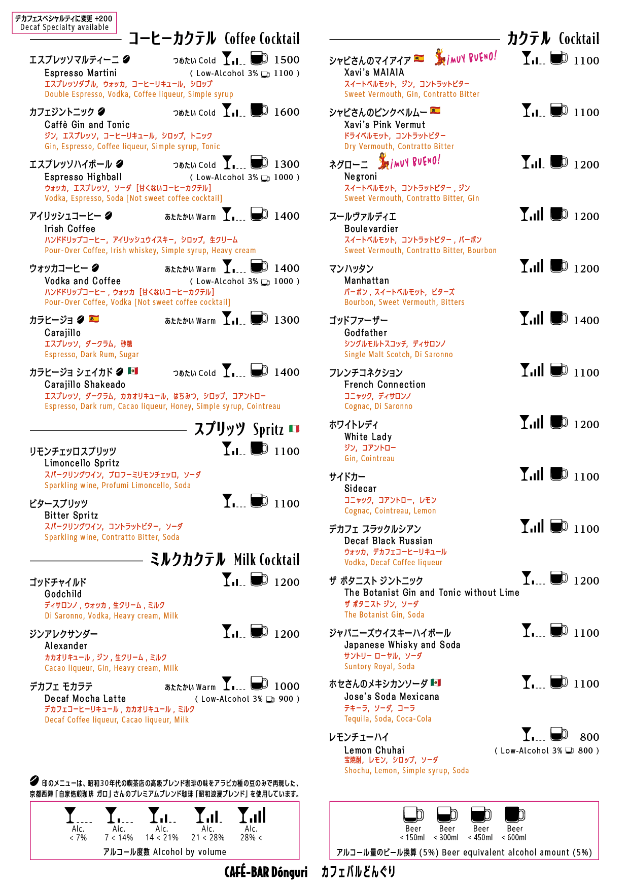 ・色々な国のスタイルのコーヒーとコーヒーカクテル