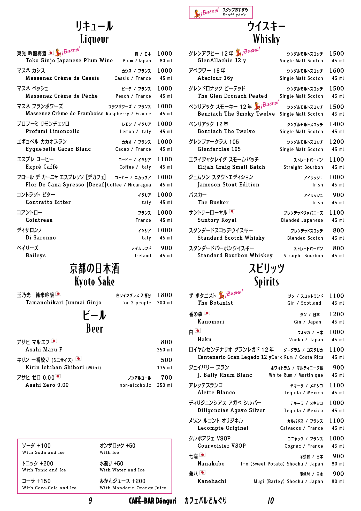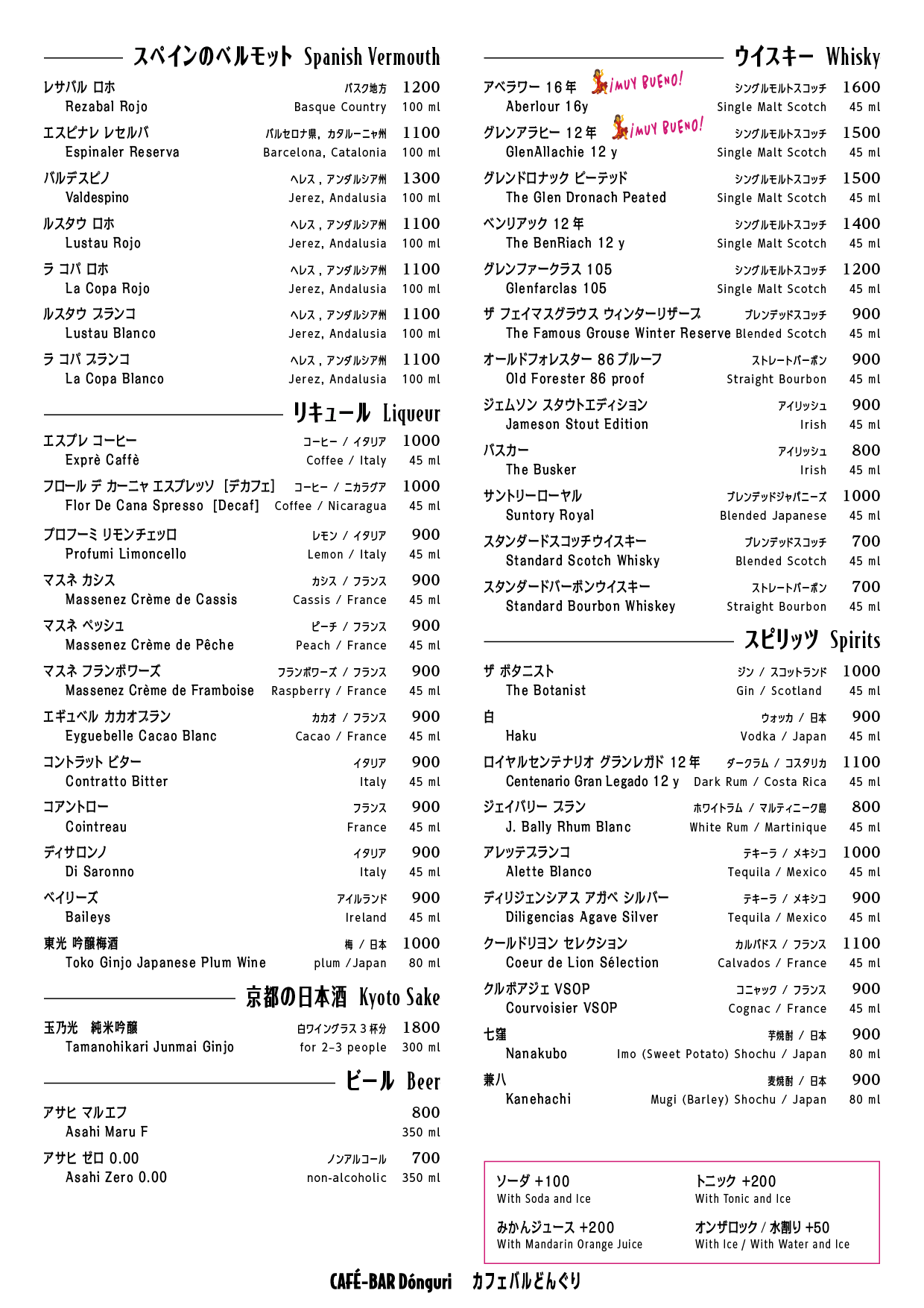 ・カクテル/ウイスキー/スピリッツ/リキュール